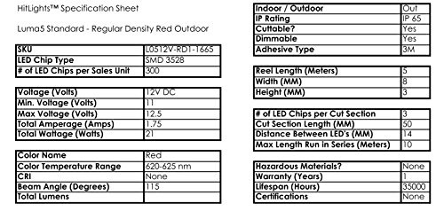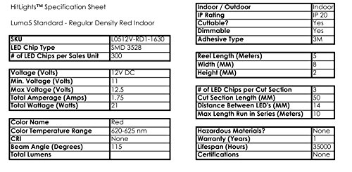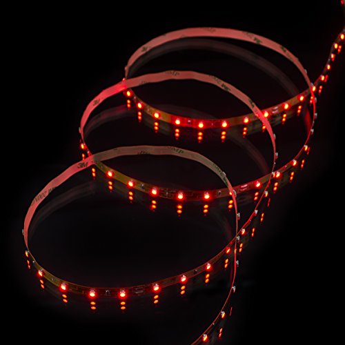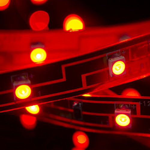 3528 Red LED Light Strip - 300 LEDs, 72 Lumens & 1.3 Watts per Foot, 12V DC, Adhesive Backed - for Kitchens, Cabinets, Displays, Bedrooms, Crown Molding & More