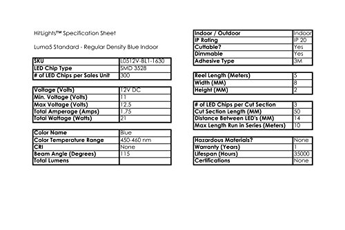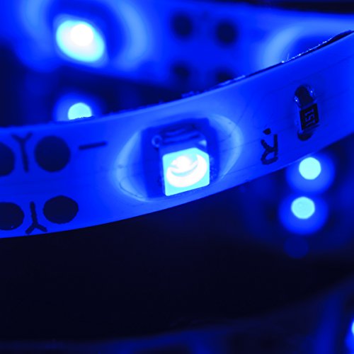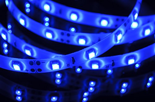 3528 Blue LED Light Strip - 300 LEDs, 72 Lumens & 1.3 Watts per Foot, 12V DC, Adhesive Backed - for Kitchens, Cabinets, Displays, Bedrooms, Crown Molding & More