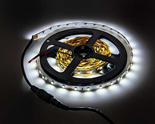 Weatherproof Cool White LED Light Strip, 3528 - 16.4 Feet, 300 LEDs, 5000K, 72 Lumens per Foot. 12V DC