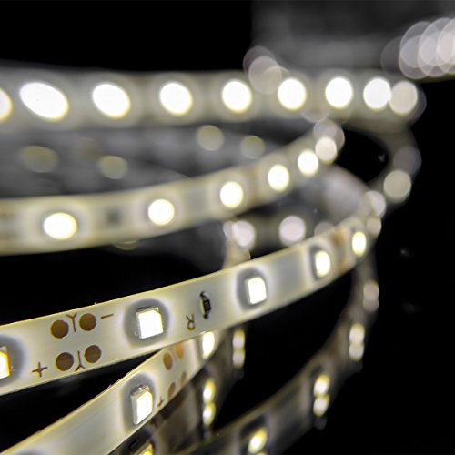 Weatherproof Warm White LED Light Strip, 3528 - 16.4 Feet, 300 LEDs, 3000K, 72 Lumens per Foot. 12V DC