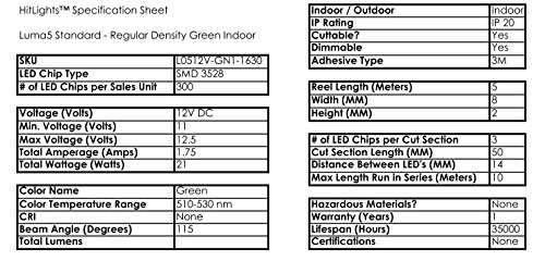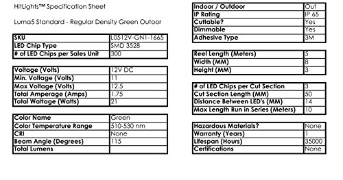 3528 Green LED Light Strip - 300 LEDs, 72 Lumens & 1.3 Watts per Foot, 12V DC, Adhesive Backed - for Kitchens, Cabinets, Displays, Bedrooms, Crown Molding & More