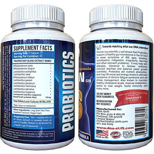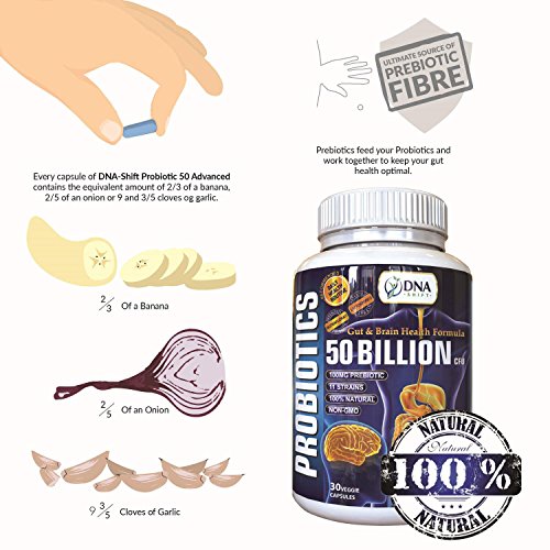 DNA Shift® Prebiotics and Probiotics 50 Billion NATURAL - 11 Strain LIVE Probiotic for Men & Women - Probiotic for Antibiotics, Digestive & Brain Health. It may...
