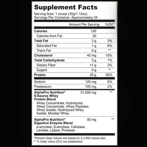25 Grams of Protein per Scoop 100% Grass Fed Sources 6 Protein Sources for Fast, Medium and Slow Assimilation Rates Promotes an Extended Anabolic Environment Stimulates Protein Synthesis ZERO Sugar - Low Fat - ZERO Trans Fats - NO Fillers Sweetened with natural Splenda-Sucralose Blend No Aspartame Mixes Instantly and Tastes Amazing!