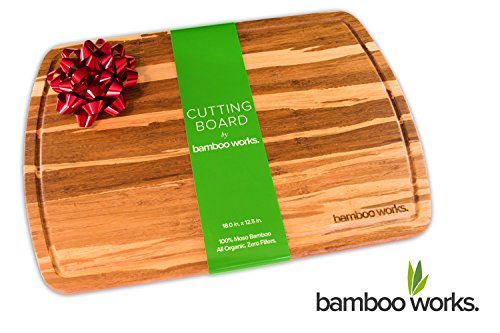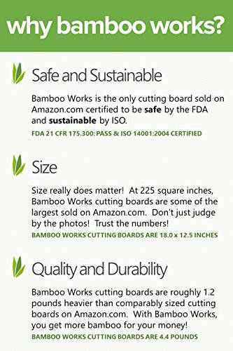 - EXCEPTIONAL QUALITY -- Crafted from 100% premium organic Moso bamboo, one of the strongest strands of bamboo in existence, to provide exceptional quality that you truly feel. The end result is a professional, high quality, durable and thick edge grain cutting board that is guaranteed to exceed your expectations. Bamboo Works is simply the best hardwood cutting board on the market today.