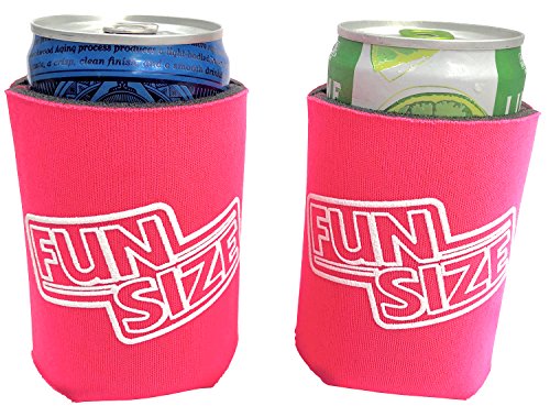 8 oz. Premium Slim Mini Beer & Soda Can Sleeves - Set of 2 "Fun Size" Neoprene Coolie Coolers (Bright Pink)