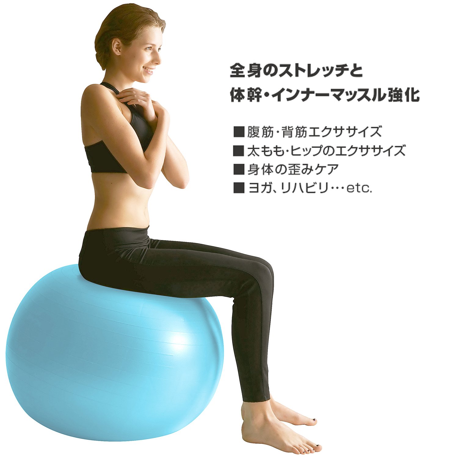 Using the momentum and rolling of the ball, exercises of the abdominal muscles / back muscles and thighs and hips