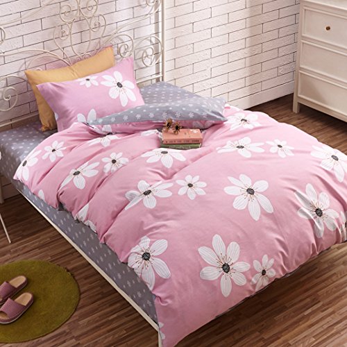 MAXYOYO Home Textiles Teen Girls Cute Pink Floral Printing 100% Cotton Duvet Cover Sets 3Pcs,Twin