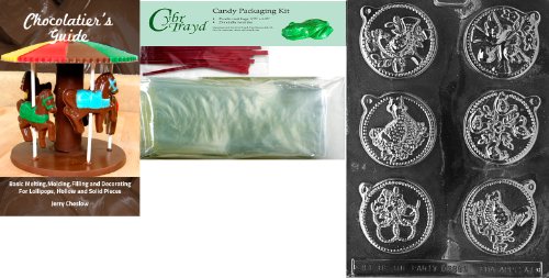 Cybrtrayd 12 Days of Christmas, 1 to 6 Chocolate Mold with Chocolatier's Bundle of 25 Cello Bags, 25 Red Twist Ties and Chocolatier's Guide