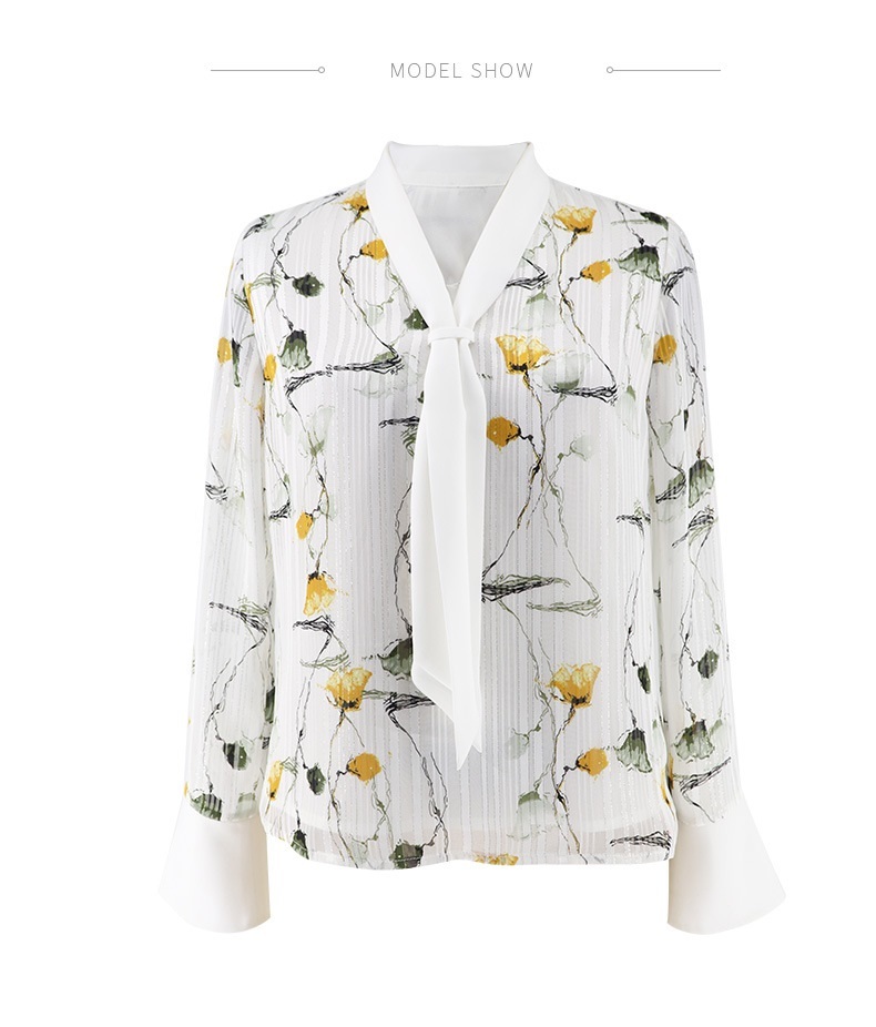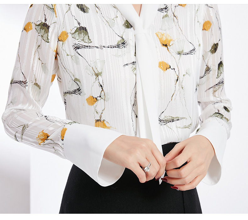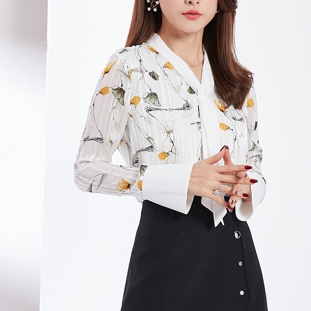 ボウタイ付きできちんと感をプラスし、ワイドカフスもアクセントになる大人女子にぴったりの1枚です。
