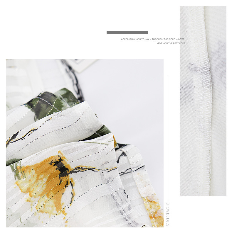 ラメ糸で作り出されたストライプ柄に華やかさが増す花柄プリントをオン!