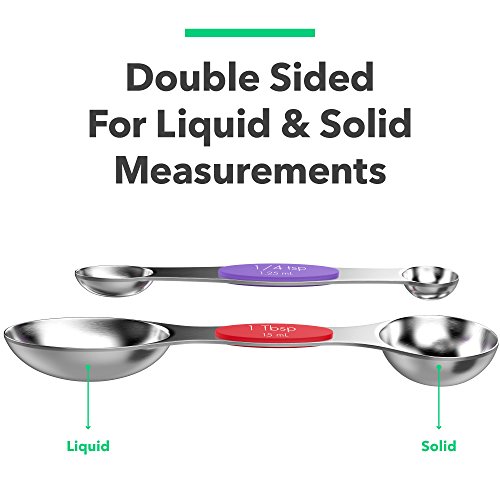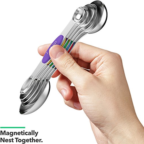 Studio : Vremi Publisher : Vremi Product Description They're close, they're alluring, they're accurate, they're The Clique Magnetic Measuring Spoon Set by Vremi! This versatile 5 piece measuring spoon set is double sided with teaspoon / tablespoon and mL measurements for both dry and liquid ingredients, and features dual spoons so you don't have to stop and clean as you measure or cook. Made from durable BPA free stainless steel metal for measuring culinary spices, baked goods, cooking liquids, supplements and more. With a flat base for level and exact measurement, this spoon set rests easily on the kitchen counter. The measuring spoons have narrow ends and are long enough to reach deep inside your spice jar without messing up your hands. And with their magnetic backs, they stick together so you don't lose each piece as you use them over time, and they stay clutter free when you store them in the drawer. The Clique Magnetic Measuring Spoon Set is tough and multi functional, so there's no guessing out measurements when cooking or baking. You can even make watermelon balls with these rounded measuring spoons if you don't have a melon baller. And these spoons give you effortless cleaning - just throw them in the dishwasher when you're done. Product Details Care Dishwasher safe and BPA free measuring set includes 5 measuring spoons in stainless steel with magnetic backs: - ¼ teaspoon (1.25 ml tsp)