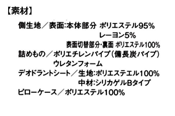 へたりにくく、しっかりとした備長炭練り込みパイプを詰め物に使用し、頭を支えます。枕裏面には取り出し可能なデオドラントシートが装着されているため、気になる加齢臭や汗のニオイをしっかり吸着・消臭します。 |