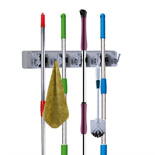 - Space-Saving and Sturdy: Wall mounted mop and broom holder provides a solution to clean and organize your garage, garden, kitchen, laundry room, toliet, office. It can dry or air out wet mop and dusters so that you won't smell the musty odor.