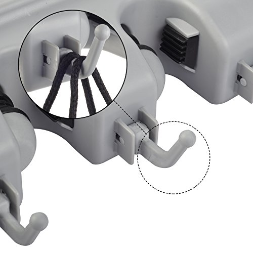 - Retractble Ball Slots and Hooks: The mop holder rack has 4 ball slots and 5 hooks that can be pulled down for use or pushed back up if not needed, therefore you can keep your mops, brooms and dusters neatly arranged.