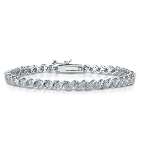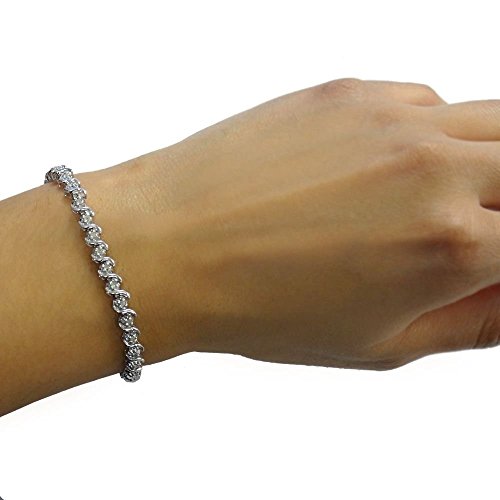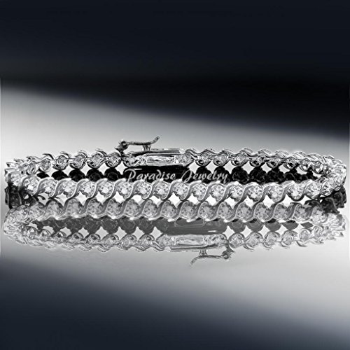 -. Binding : Jewelry -. Brand : Paradise Jewelers -. Department : womens -. Feature : 0.60 to 0.90 Total Carat Weight of Naturally Formed White Diamonds (CTW Varies with Length) with White Gold-Plated Certified Brass / Available in 5 to 10 Inches with Half Sizes / Diamond Clarity: I2-I3; Diamond Color: G-H; Bracelet Width: 4.5 mm; Product Enclosed in Black Velvet Gift Box / Ships Same Day if Order Received by 3:00 PM Central USA; Free First Class Shipping Includes Tracking / 30-Day, Hassle-Free, Full Money Back Guarantee; Contact Us to Process a Return and Receive a Prepaid Label with Tracking -. Label : Paradise Jewelers -. Manufacturer : Paradise Jewelers -. ProductGroup : Jewelry -. ProductTypeName : FASHIONNECKLACEBRACELETANKLET -. Publisher : Paradise Jewelers -. Studio : Paradise Jewelers -. Title : Women's 14K White Gold-Plated Brass 1/2 CT Diamond S-Link Tennis Bracelet 5-10 Inches