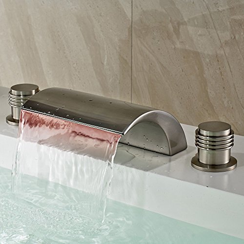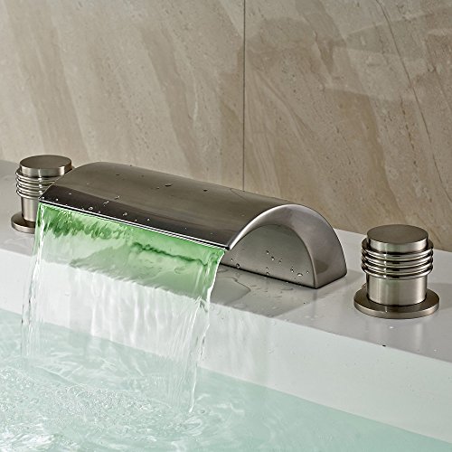 Classic Victoria Bathroom Waterfall LED Roman Bathroom Faucet Tub Filler Faucet (Brushed Nickel)