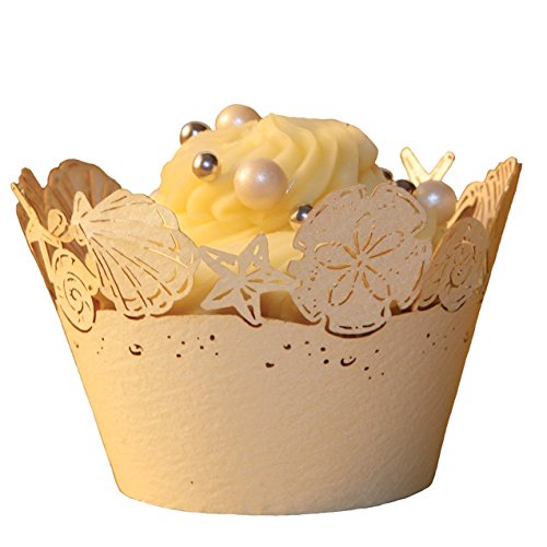 Worldoor Pack of 48 PCS Ivory Pearlescent Paper Beach Themed Wedding Sea Shells Seashell Cupcake Wrappers Seashells Regular Cupcake Wrapper Baby Shower Wedding Party Cake Liners Decoration ( Ivory )
