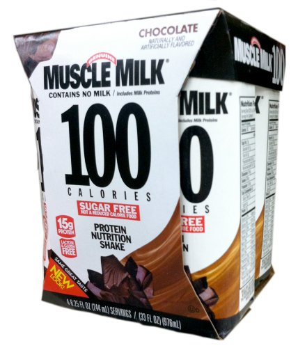 -. Feature : 1 - 4pack container of Chocolate MUSCLE MILK 100 Calories SUGAR FREE Protein Shakes by Cytosport / Muscle Milk 100 Calories uses the same high quality proteins as Muscle Milk but in a convenient 100 calorie serving. With 15 grams of protein in each carton, Muscle Milk 100 Calories provides ultra portable protein to help fuel your recovery, whenever and wherever you need it. / A unique mix of complete multi-source proteins, including calcium sodium caseinate, milk protein isolate, and whey, which provide amino acids - the building blocks of muscle tissue. Translation? High quality protein to help you recover from exercise and build muscle. / LACTOSE, GLUTEN AND SUGAR FREE, with 20 essential vitamins and minerals.