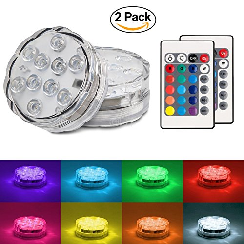 Submersible 10 LED Waterproof Light RGB for Vase Wedding Party Fish Tank Decors + Remote (2) PACK