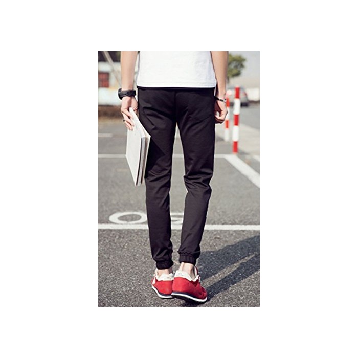 (모노re re)Monrr 맨즈 스웨트 팬츠 테이퍼 드 사루엘(Sarrouel) 슬림 sweat 죠가 저지 바지 스키니 (L,검정)