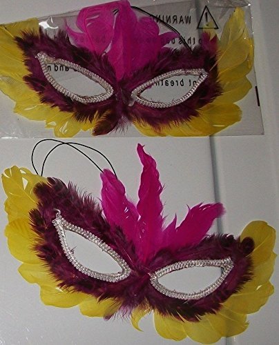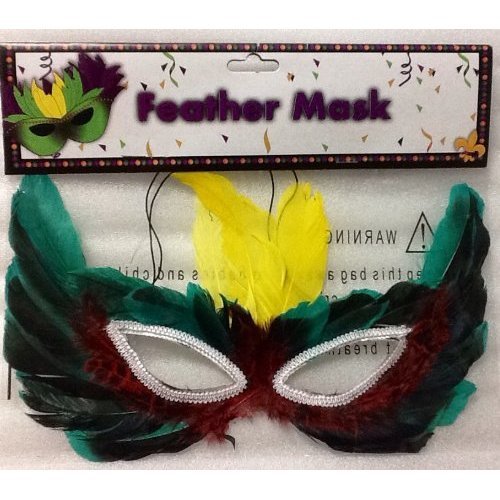 Mardi Gras Feather Mask ~ Green, Black, Yellow, Maroon, & Purple