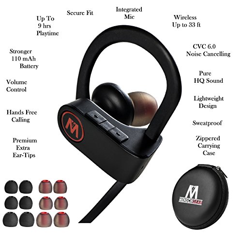 SECURE FIT & EXCEPTIONAL COMFORT – The Superbuds Bluetooth headphones Become part of your workout with upgraded sweatproof ergonomic Design that is made for sports. We've added 6 Pairs (12 pieces) of Premium Ear-Tips and Extra soft silicone ear-hooks to increase your convenience. These in-ear headphones stay put while running, jogging, cycling or at the gym .