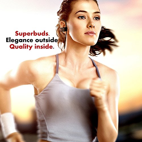 Superbuds wireless bluetooth sport Headphones, Secure In-ear comfort Fit sweatproof Earbuds, iphone android 4.1 compatible headset, hands-free calling, noise cancelling quality sound with built-in Mic