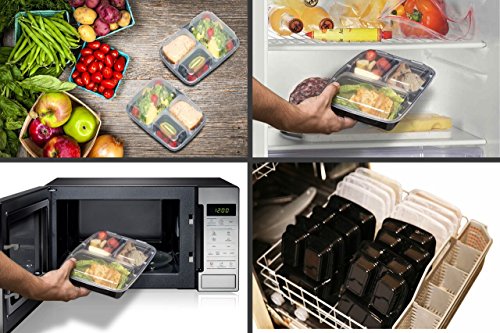 ContainersHub divided rectangular food trays are BPA Free, microwave safe, and offer convenient use as restaurant to go containers. Raised tray lids allow a generous amount of delicious food to be stored in this reasonably priced set of 12 food storage containers.