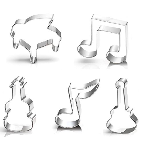ZJWEI Arts Bass Guitar Music Notes Qute Stainless Steel Cookie Cutter Fondant Cutter Cake Cake Decoration Tools 5 Pcs Set