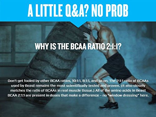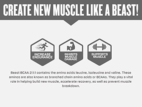 BEST BCAA RATIO - The 2:1:1 ratio of Leucine, Isoleucine and Valine used by Beast is the most tested and proven. These branched-chain amino acids are three of the nine essential amino acids, and in Beast's 2:1:1 ratio, they are the closest match to the amount found in real muscle tissue.