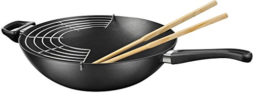 Deeply anchored in Danish tradition and craftsmanship, SCANPAN creates timeless yet functional tools for a any modern kitchen, from the household to the professional. SCANPAN Induction Plus fry pans allow the cook to braise, sear and deglaze food with the same gourmet results one would expect from cooking with a stainless steel pan. The patented Ceramic Titanium PFOA-Free non-stick surface is 10 times harder than steel, making it metal-utensil safe. Every SCANPAN cooking vessel is made from squeeze-casted aluminum, providing even heat distribution throughout the entire pan. All SCANPAN cookware is made from 100% recycled aluminum, affirming our commitment to sustainability and reducing our carbon footprint. Oven safe to 500F, all SCANPAN Induction Plus cookware is dishwasher safe and comes with a limited lifetime warranty. Includes rack and chopsticks.Feature