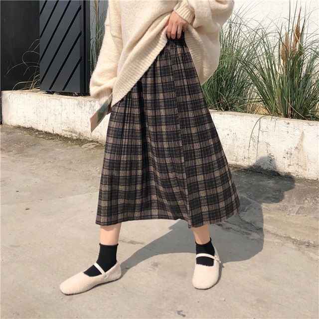 落ち着いた色味のチェック柄がガーリーなプリーツスカート☆