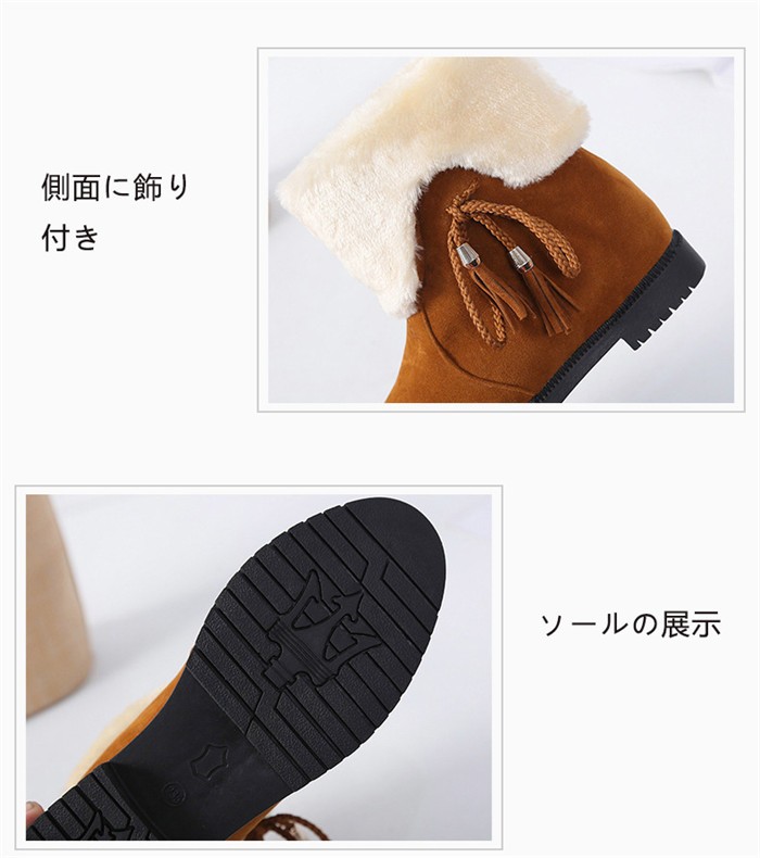 靴の表面の材質:スクラブ裏面:暖かい材質サイズ:23~24.5cm約(一つ大きめのサイズをおすすめ)色:レッド、ブラック、イエロー筒丈:12cm約ヒールの高さ:3cm約足の長さ:写真のように寒い冬に一足だけで、暖かいです。筒が折りたたみ可能です。裏面に暖かい材質で作って、冬に最適です。ムートンブーツ レディース 靴 大きいサイズ ローヒール やわらか あったか 冷え性 保温 防寒 雪 滑らない 疲れにくい 家族