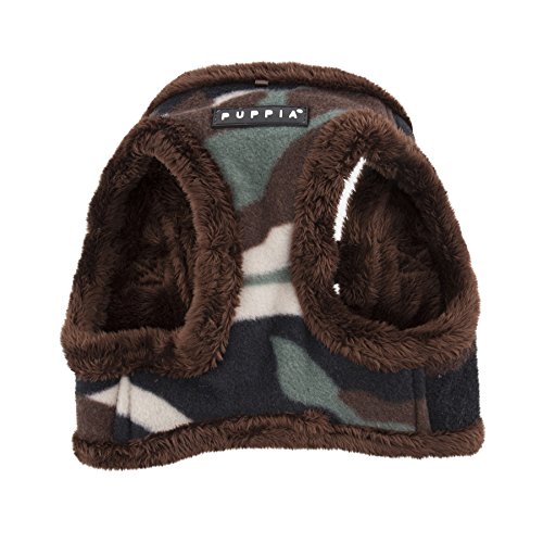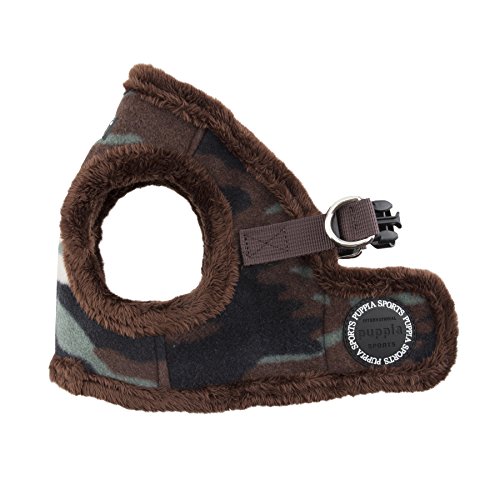 Studio : Puppetronics Publisher : Puppetronics Binding : Misc. Product Description The Corporal Vest Harness B is a step-in harness, with a backside hook and loop closure and quick release buckle. Though the chest size is not adjustable like the "over the head" A harnesses, some people have found this harness to be more comfortable and easier to put on the dog. This harness features an Camouflage pattern and solid schemed and features a thick fleece inside for the winter months. Matching leashes available and sold separately. Available in Camo and Blue in sizes ranging from Small to X-Large. Please note that because these products were created with small breeds in mind, larger sizes (i.e. Large, Extra-Large, etc.) do not necessarily mean larger breeds. Please refer to image of the size chart. It is very important to measure your dog with a tape measure according to the size chart. As a general rule of thumb, if your dog falls in between sizes, it is usually better to go up a size. Weight figures are for estimates only. Always use actual measurements. Please note that when measuring your dog for clothing, it's very important to have an accurate measurement of your dog's neck and chest girth. IMPORTANT: Please note that when measuring your dog, the measurement for the neck must be taken at the BASE OF THE NECK and chest girth must be taken behind the front legs. Also it is important to take into account the size of the dog's head as well as neck girth and chest girth. Since some dogs have a much larger head than their neck, please be sure that the neck opening is large enough to slide over your dog's head. 0