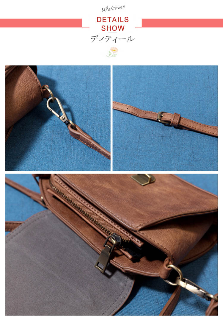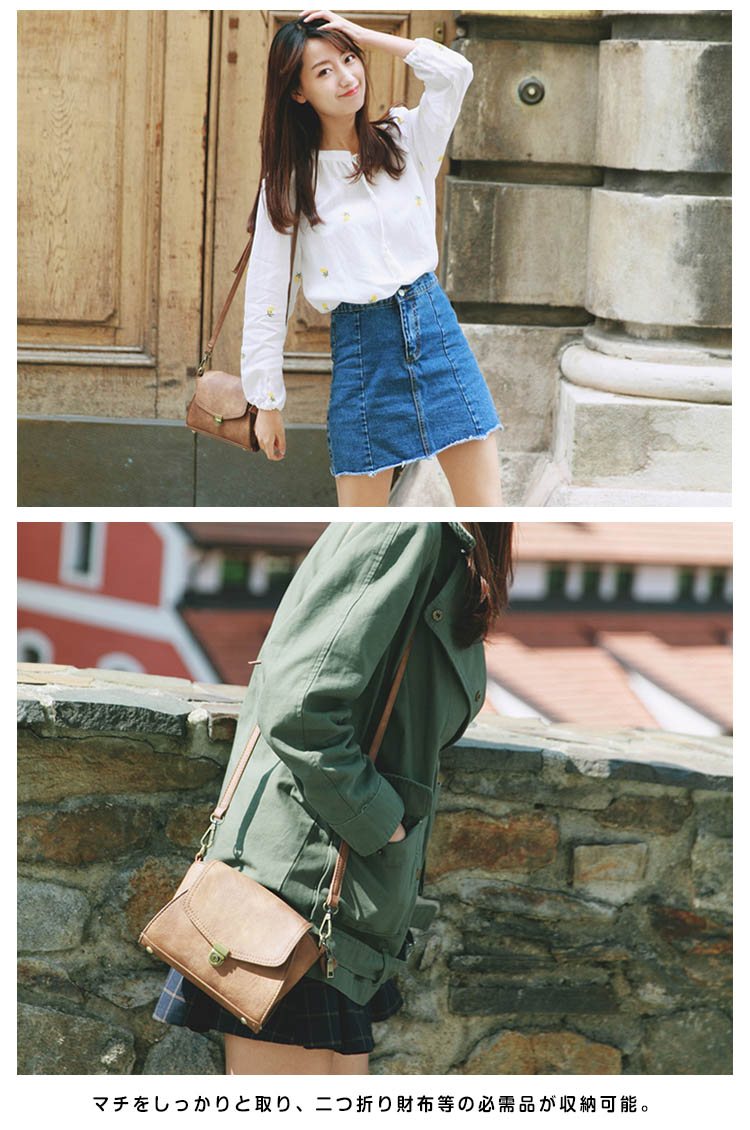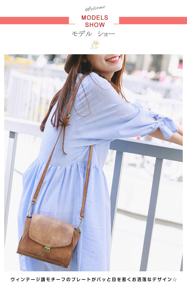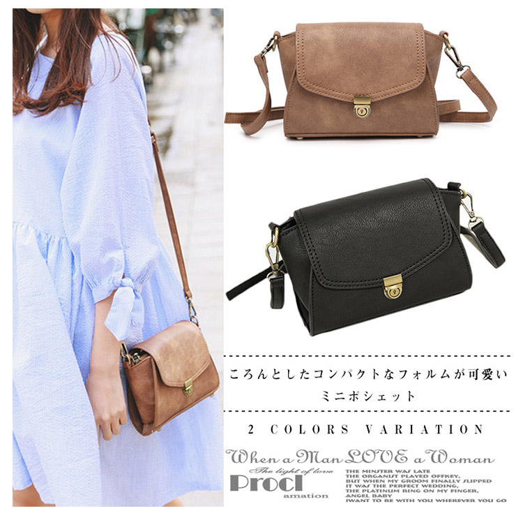 | ころんとしたコンパクトなフォルムが可愛いミニポシェット。ヴィンテージ調モチーフのプレートがパッと目を惹くお洒落なデザイン☆アクセサリー感覚で持てるサイズ感で、コーデの挿し色として取り入れるのもおススメです。マチをしっかりと取り、二つ折り財布等の必需品が収納可能。お出掛けスタイルやデイリー使いにもピッタリなバッグです。 | |