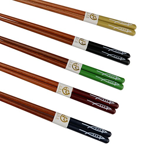 - JAPANESE STYLE - Simple but sophisticated fish pattern with five different colors, length of 9-Inch makes it easy to grip and use, and the painting on the handles give an anti-slip effect. The sharp end is Japanese-style and it helps to pick up food easily.