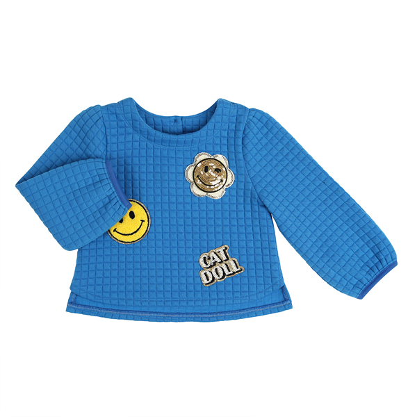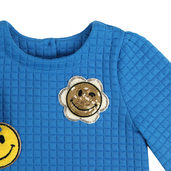 상품설명 BL 자가드 스마일 탑입니다. 소매 밑단이 자연스레 블루종되게 떨어져서 착장시 예쁜 핏을 보여주는데요. 사각 퀼팅느낌의 포근한 쿠션지 패브릭에 다양한 모양의 스마일 와팬으로 포인트를 준 스타일입니다.