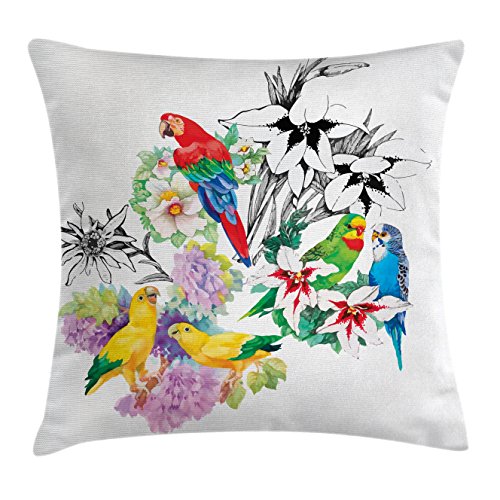 (Ambesonne)/Bedding Bath/Bedding/DIRECT FROM USA/Parrot Throw Pillow Cushion Cover by Ambesonne, Parrots Observing the World on Top of Floral Fo...