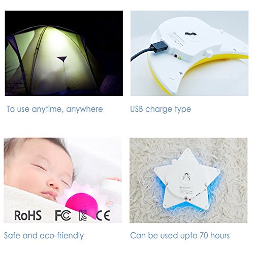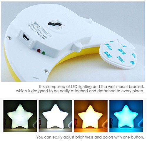 PalmLighting Multicolor Portable LED Night Light for kids, toddler, baby with USB charging cable (Star)