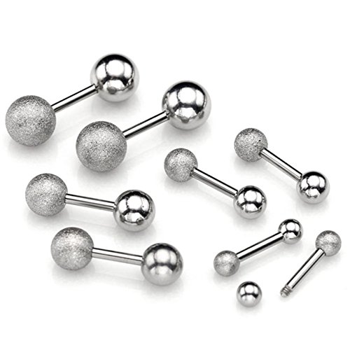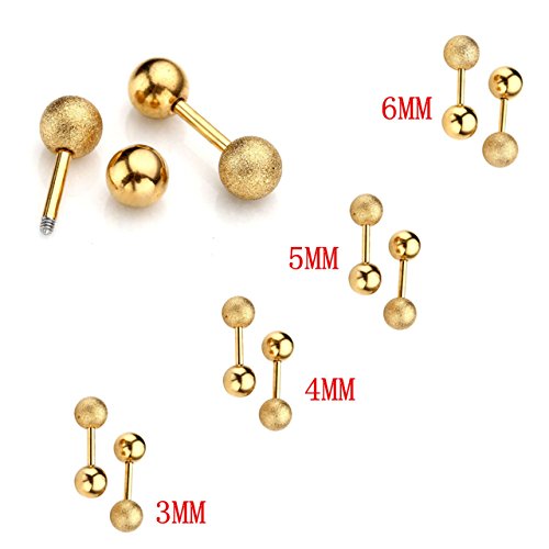 -. Feature : Including a black Velvet named JOVIVI on it. / Material:Stainless Steel / Pin Gauge:16g(1.2mm),Pin Length:1/4 inch(6mm). Total Length:1/2inch-11/16 inch (12-17mm). / Ball Size:3mm,4mm,5mm,6mm. Color:Silver,Golden / Package Content:4Pairsx Barbell Ring ( Each size in 1 pair) ,1x Black Velvet Gift Bag