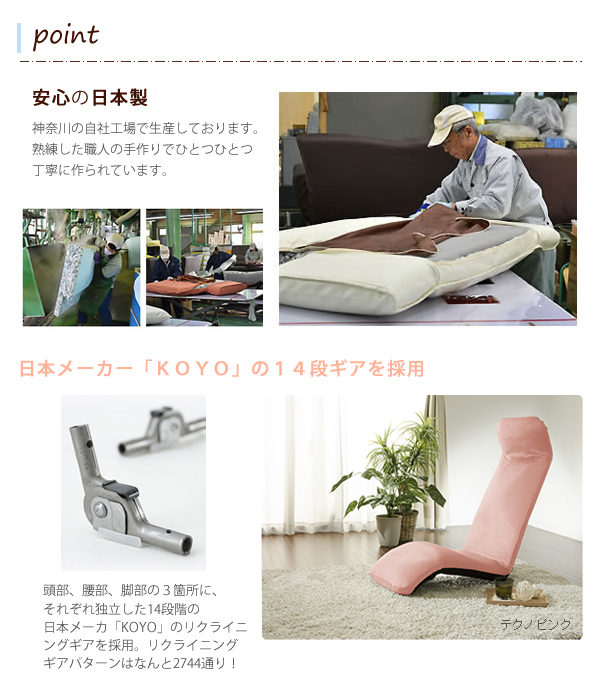 ●リクライニグ14段階可能。