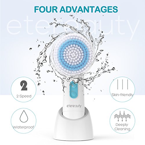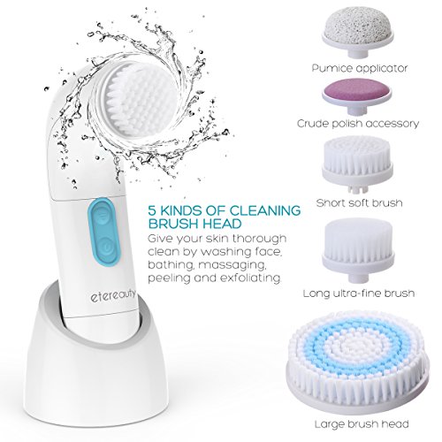-. Title : ETEREAUTY Facial Brush Waterproof Body Facial Cleansing Brush with 5 Brush Heads for Exfoliating Removing Blackhead
