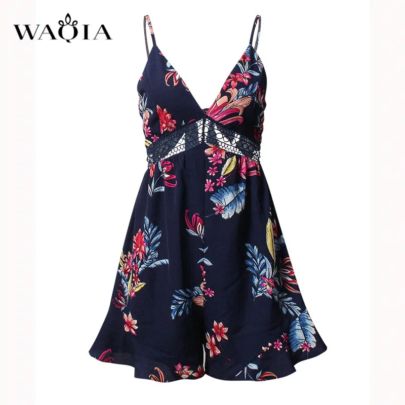 jumpsuit summer: Women Rompers print lace Jumpsuit Summer Short pleated Overalls