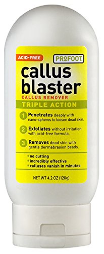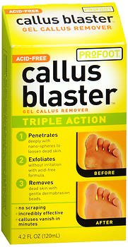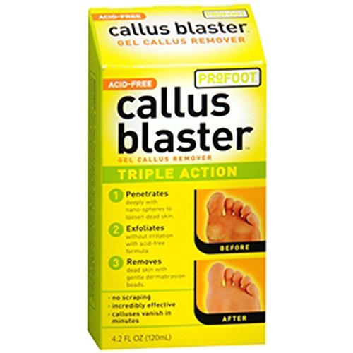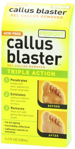 ReleaseDate : 2012-09-21 Studio : Profoot Footcare Products Publisher : Profoot Footcare Products Binding : Health and Beauty Product Description Acid Free Callus Blaster gel remover offers triple action; Penetrate, Exfoliates and Removes. The super concentrated formula acts fast and reveals soft, smooth skin in minutes. Callus Blaster penetrates deep to quickly break down stubborn calluses, exfoliates with an acid-free formula without irritation, then removes dead skin with gentle pumice. No scraping, leaves feet soft and smooth. 0
