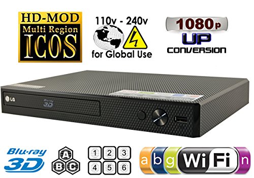 DVD Region: 012345678 PAL/NTSC BD Zone: A/B/C World-Wide Voltage -100~240V Auto - SIMPLINK - USB Playback Music Flow - CD/USB Source - LG AV Remote App - External HDD Playback Watch 1080p 2D and 3D Blu-ray content and access Internet streaming services with the Wi-Fi and 3D Blu-ray Disc Player. This Blu-ray player has an HDMI port for outputting Full HD video to an external display, and it can also upscale lower-resolution content to conform to 1080p displays. Integrated Wi-Fi and Ethernet connectivity allows you to access free and subscription-based streaming content such as YouTube and Netflix. With Blu-ray and Blu-ray 3D you can enjoy all the latest movies in Full 1080p picture resolution. Perfect for playing all your 3D or 2D Blu-ray and DVD movies. Better yet, our line of Blu-ray Disc Players upscales existing DVDs to near HD quality. Connecting your LG BPM55 3D Blu-ray Player to the Internet and the world of online content is easy when you built-in WiFi. If you have an existing wireless broadband network, setup is simple and you don't need to worry about messy wires. Access premium content from providers like Netflix, Hulu Plus and YouTube to stream your favorite movies and TV shows. LG connects you to the content that you and your family want. The HDMI output also supports high-resolution audio formats such as Dolby TrueHD and DTS-HD Master Audio for a dynamic multi-channel surround sound experience. The front-mounted USB port allows you to connect devices such as thumb drives for easy playback of multimedia files. The free LG remote app is available for Android and iOS devices, which allows you to use your smartphone or tablet as a remote control.