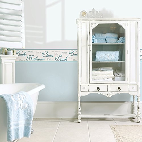 Fine Decor FDB50032 Multicolor Bathroom Script Peel & Stick Border, Multi-Color