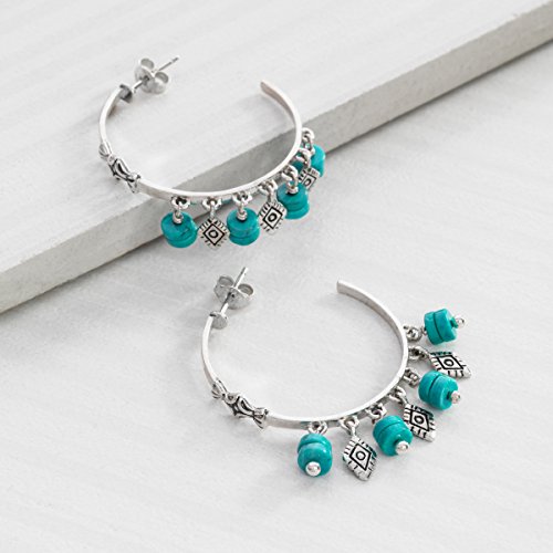 -. Feature : Take the plunge with the Dive In Earrings, crafted in sterling silver with howlite, totaling 6 1/2 ct, and sterling silver beads along the base for an artsy, southwestern vibe / THE NEW WEST: With a bold gemstone like turquoise, this is the perfect piece to complement your plaid, suede and chambray staples. Southwestern inspired jewelry can be categorized by its Navajo or Native American patterns, fringes, tassels, warm and earthy colors and its use of materials like leather and calf hair. / HOWLITE: Sometimes nicknamed the "stone of awareness," howlite is believed to absorb one's own anger - or protect from another's anger toward you / STERLING SILVER: Silpada's signature metal is known amongst jewelry wearers for its strength, brightness, and shine; all Silpada earrings feature sterling silver back-findings (regardless of the prominent metal of the piece) for decreased risks of allergic reactions and tarnish residue on skin / Earrings measure 1 1/2 by 1/8 inches and feature post with friction back back-findings