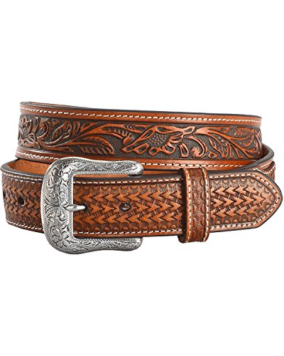 Studio : Cody James Publisher : Cody James Binding : Apparel Product Description This Cody James Basket Weave Overlay Leather Belt has a blend of embossed designs for a handsome western look. It has floral filigree throughout with a basket weave overlay on the front. The silver toned buckle features a traditional filigree engraved design. This Cody James belt will keep you looking great from the saddle to the office. 0