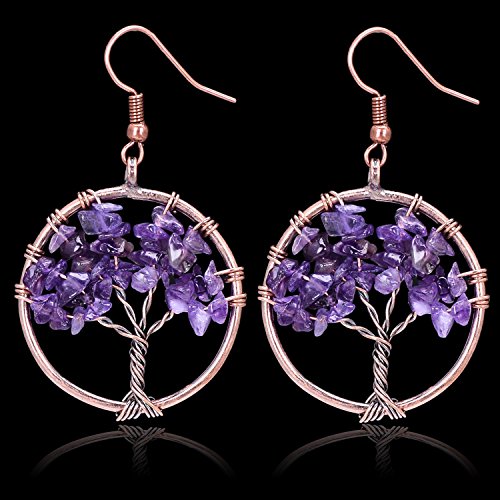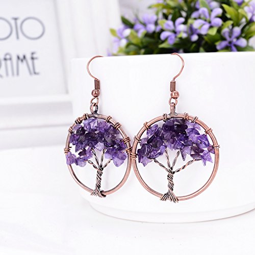 -. Title : Tree of Life Dangle Earrings Chakra Jewelry Handmade Wire Wrapped Birthstone Earrings for Women