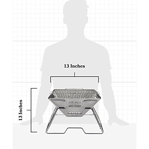 - Made from premium food grade stainless steel. For use with charcoal and wood. Includes carry bag.